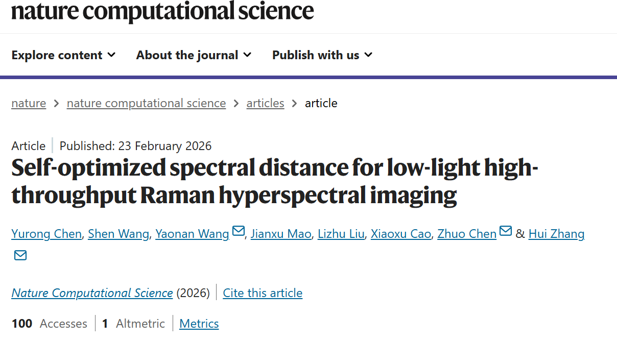 团队相关成果以“Self-optimized Spectral Distance for Low-Light High-Throughput Raman Hyperspectral Imaging”为题,发表在国际顶尖期刊 Nature Computational Science《自然·计算科学》上。论文通讯作者为湖南大学王耀南院士、陈卓教授和张辉教授,湖南大学为唯一通讯单位;人工智能与机器人学院博士后陈煜嵘、化学化工学院博士后王昚为共同第一作者。该研究得到国家自然科学基金、科技部及湖南省科技厅等项目资助支持。