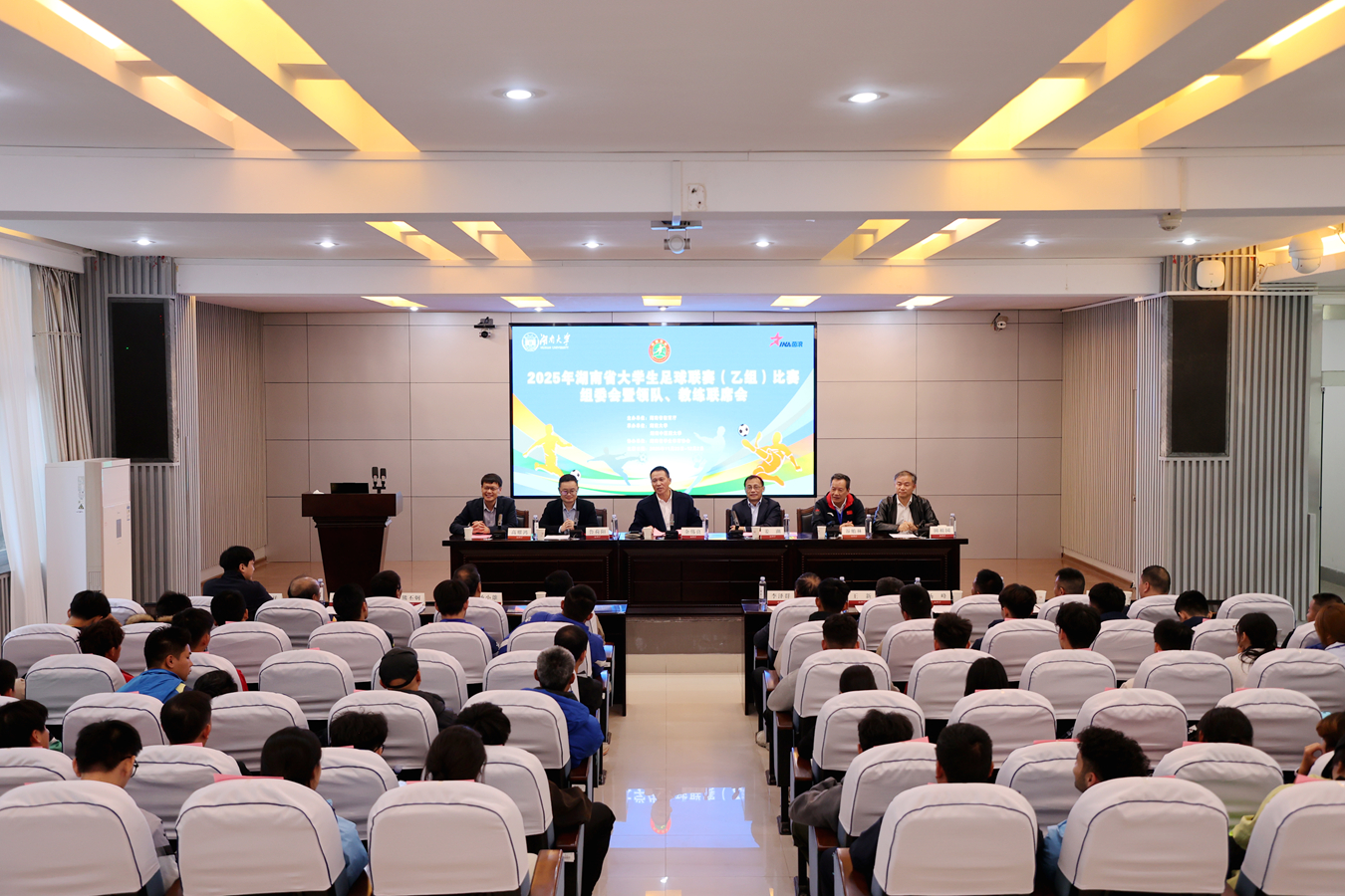 24日下午,湖南省委教育工委委员、湖南省教育厅党组成员余伟良,副校长姜潮等出席赛前组委会暨领队、教练联席会并致辞。余伟良在讲话中表示,本届联赛是落实《湖南省校园“三大球”四级联赛组织方案(试行)》的关键一环,是我省构建从小学到大学一体化竞赛体系的重要实践,也是继“湘超”火爆出圈后,深化体教融合、推动校园足球高质量发展的又一重要举措。他强调,全体参赛队伍要恪守公平公正原则,弘扬体育精神;教练员要履行育人使命,引导学生树立正确胜负观;工作人员要筑牢安全底线,协同保障赛事顺利运行。