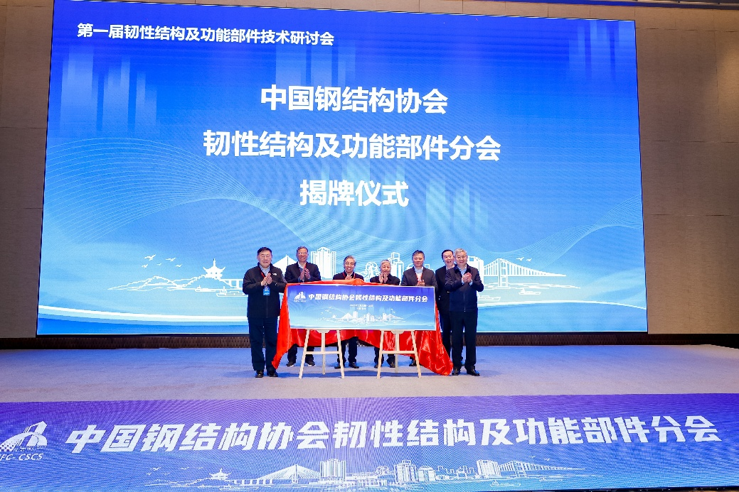 会议第二阶段为技术研讨会。开幕式上,中国钢结构协会会长曾滨、湖南大学副校长陈仁朋分别致辞。周绪红、聂建国共同为分会揭牌,陈政清、郑健龙、曾滨、郝洪、余志武等院士上台见证。