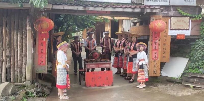 在太阳落山之前,当地村民邀请调研团队参加花瑶族的迎宾活动——喝拦门酒。按照瑶族传统,客人们在进门之前必须喝上一碗主人亲自倒好的米酒,吃一块香醇的腊肉,才被允许“进门”。在进完晚餐之后,夕阳沉入群山之际,今晚最大的活动花瑶篝火晚会拉开了序幕。晚会中,美丽的花瑶姑娘们献上了一支又一支的花瑶传统舞蹈,晚会的气氛也随着花瑶姑娘与同学们的互动而愈发热烈起来。整场晚会中最牵动人心的节目便是诗朗诵《不忘初心,牢记使命》,期间,表演者饱含深情地诵出了人民对党的信任与感恩,在场的同学们的眼睛也逐渐湿润了。村民们亲身经历了一家家贫困户脱贫的艰难,亲眼见证了脱贫工作的显著成效,也向我们传递出他们最质朴真诚的感恩之心。