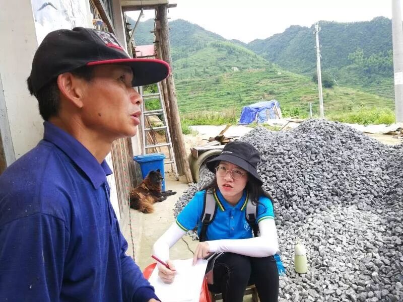 连日的大雨像是感知到我们的需要,识趣地不再露面。14日上午,一行七人顺着居住地“梯田农家”沿山路向下行进,在到达村落时分为几个小分队,分别进行调研。在调研过程中,只有少数村民的文化程度足以支持其独自填写问卷,大多数情况下,调研队员逐字逐句将问题读出来,以更通俗的语句向他们解释。上午的调研行程在白水洞村旁的周朋村收尾,收获颇丰的调研队回到住所整理上午走访所得的资料。