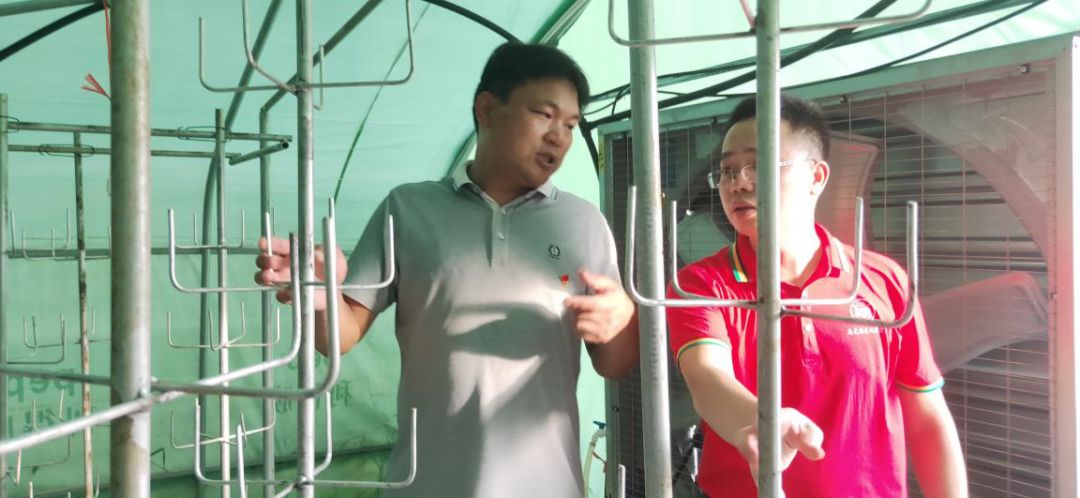 7月18日,在永州市新田县枧头镇马场岭村的食用菌产业基地,邓先军和湖南大学暑期社会调研小组介绍马场岭村产业发展相关情况——当地食用菌种植大棚第二期工程正在建设中,八月份投入使用后可安置150多个贫困劳动力就业,预计可为村集体年增收80万元以上。
