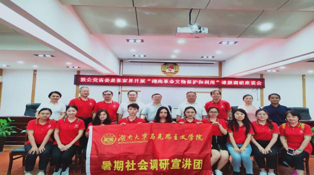 2019年7月19日3时许,湖南大学马克思主义学院暑期第十四调研小组一行13人在张家界市政协大楼,就“湖南革命文物保护和利用”这一主题,与致公党湖南省委、致公党张家界市委、张家界市直单位有关人员进行了座谈。省人大常委、致公党湖南省委专职副主委向佐谊,张家界原市委常委、政法委书记、现市老促会会长陈美林,致公党湖南省委宣传处叶玉泉处长出席座谈会并讲话。会议由张家界市政协副主席、致公党张家界参政议政委员会主任李文化主持。