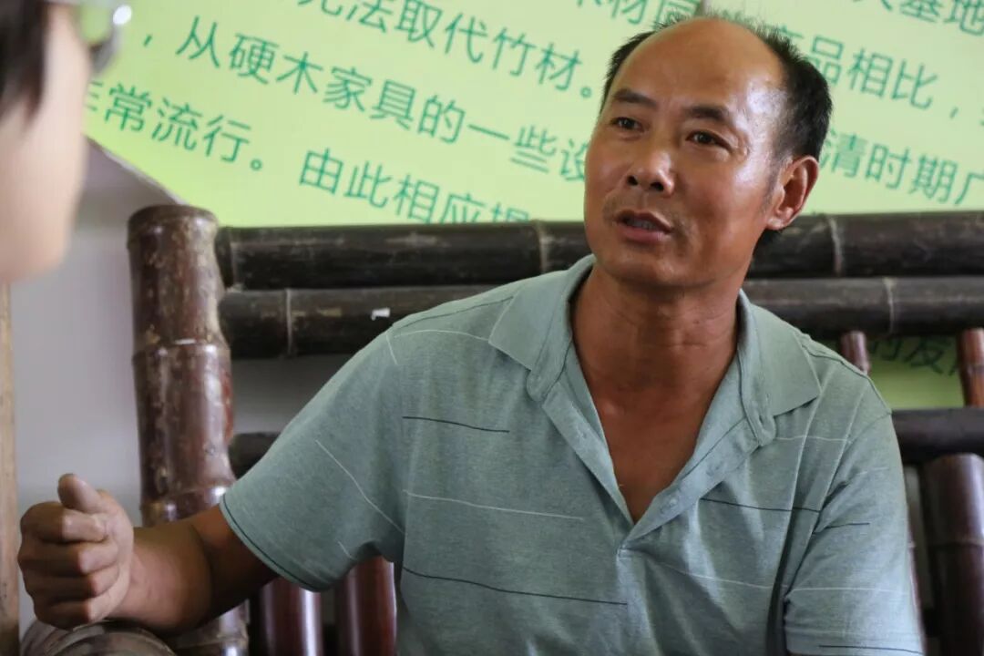 周友帮师傅家族世世代代都从事大郁制作,他本人从事大郁竹艺已有四十多年,但谈到初入行业的情景,周师傅露出了纯真的微笑:“我14岁的时候,一边在舅舅家帮忙干杂活,一边默默学习作坊里老师傅的手艺。久而久之,那些手艺都耳濡目染了。没过多久我就做出了一把竹椅子,当时家里的长辈都非常惊奇,那时我就发现了自己在这方面的天赋。”很难想象这样有些许“自夸”嫌疑的一段话,出自周友帮师傅之口,竟无半分自傲自夸,小小的得意也全化作可爱。