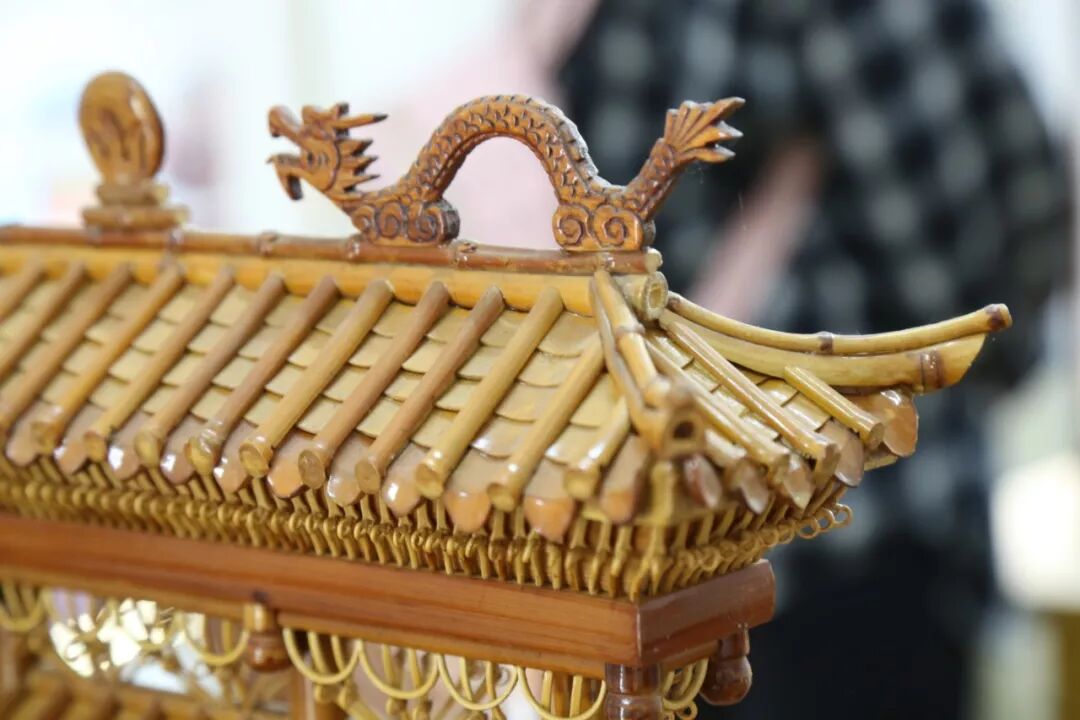 和小郁竹艺的“郁”相同,大郁的 “郁”也是使竹弯曲的特殊工艺,与小郁不同的是,大郁取材于较大的楠竹,这些楠竹皮厚粗壮,坚固耐用,适合做成房屋、家具等大件,成品虽然保留了竹子的原本形态,但在色泽、比例、触感、细节设计等方面格外讲究,具有很强的观赏性和实用性。