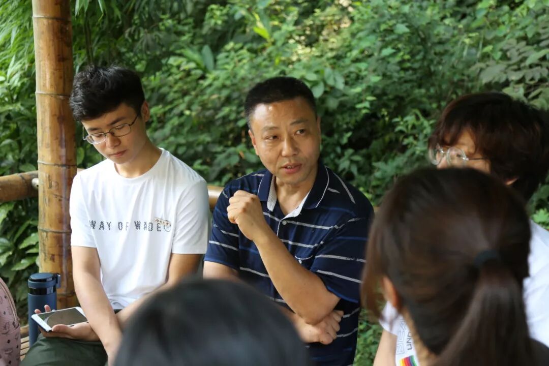 从工作坊出来,调研团队来到危师傅设计的竹亭小憩。在这里,危师傅聊起了自己年轻的往事。与大部分匠人不同,小郁并非是危师傅的家传,他向调研团队详细介绍了自己从一名小郁竹艺爱好者成为国家级非物质文化遗产传承人的故事。