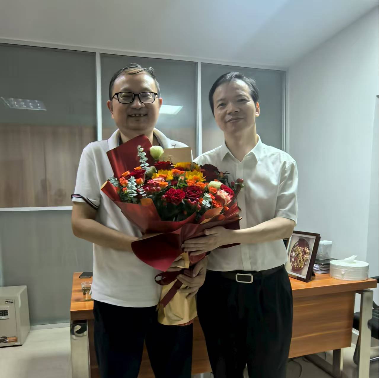 校党委副书记唐珍名看望人工智能与机器人学院教授康旭东。