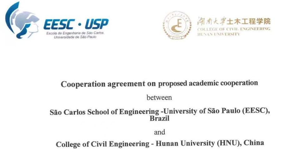 近日,湖南大学土木工程学院与巴西圣保罗大学圣卡洛斯工程学院(EESC-USP)正式签署国际合作协议。该协议旨在深化双方在人才培养与科学研究等方面的合作,推动中巴两校在工程科学领域的共同发展。