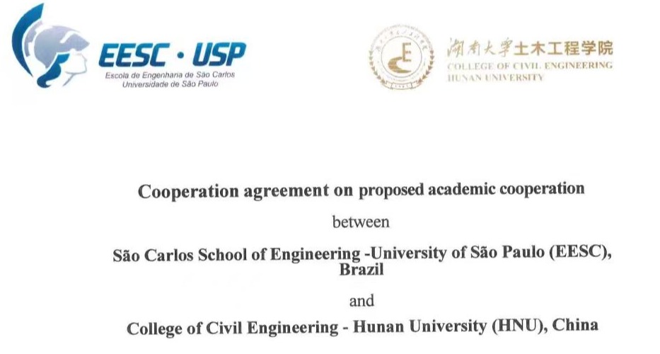 近日,湖南大学土木工程学院与巴西圣保罗大学圣卡洛斯工程学院(EESC-USP)正式签署国际合作协议。该协议旨在深化双方在人才培养与科学研究等方面的合作,推动中巴两校在工程科学领域的共同发展。根据协议,双方...