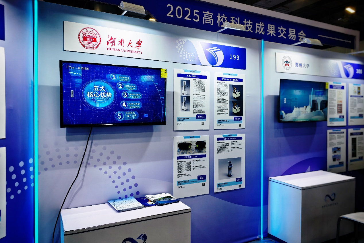 12月16日,2025高校科技成果交易会在广州开幕。广东省委书记黄坤明,教育部党组书记、部长怀进鹏出席全体会议并为高校区域技术转移转化中心(粤港澳大湾区)揭牌。广东省委副书记、省长孟凡利主持全体会议。开幕式上,湖南大学作为受邀参建单位与广州市人民政府、深圳市人民政府签订合作协议。湖南大学共有6个项目成果与孵化企业受邀参展。其中,孙炜教授团队研发的轨道交通设备清洁机器人入选成果超市展区。大湾区研究院孵化的...