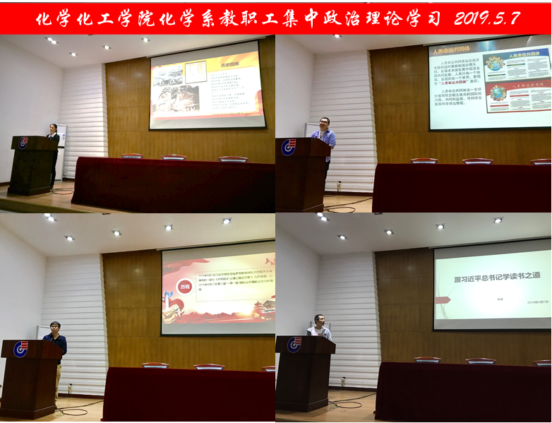 化学化工学院化学系于2019年5月7日开展了全体教职工第三次集中政治理论学习活动,本次学习由化学系第一支部和第二支部共同召集开展,第一支部书记宦双燕同志主持会议,俞汝勤院士、王玉枝书记、张晓兵院长均参加了本...