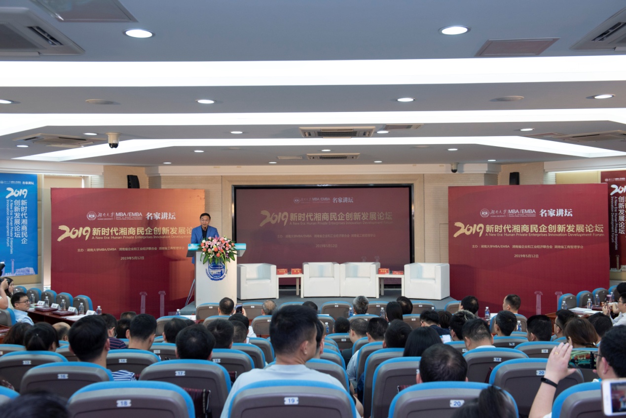 5月12日,湖南大学MBA/EMBA与湖南省企业和工业经济联合会、湖南省工商管理学会联合举办的“新时代湘商民企创新发展论坛”在湖南大学工商管理学院报告厅成功举办。