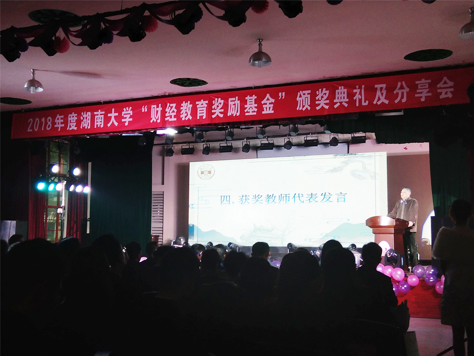 10月20日,2018年湖南大学“财经教育奖励基金”颁奖典礼及分享会在财院校区大礼堂举行。