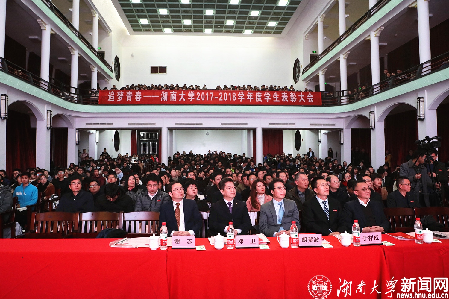 【湖大新闻】 12月25日晚,“追梦青春”湖南大学2017-2018学年度学生表彰大会在大礼堂举行。