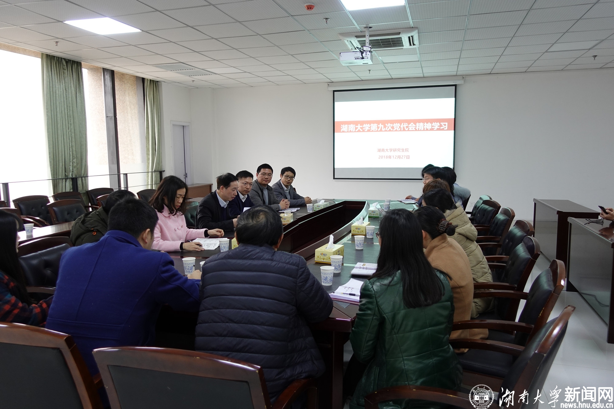 12月27日上午,研究生院召开全院大会,传达学习贯彻湖南大学第九次党代会精神。