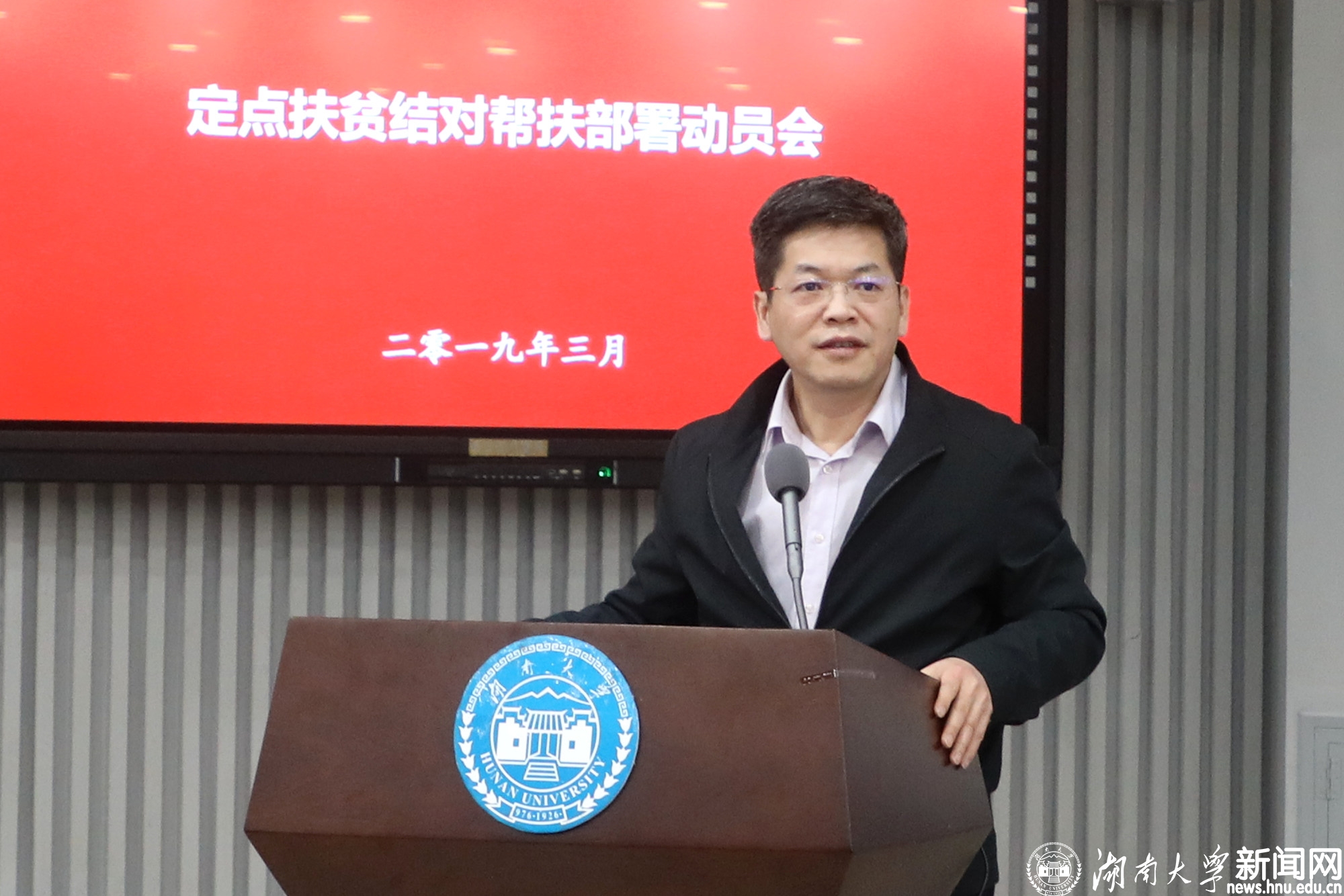 【湖大新闻】 3月12日下午,在学校召开2019年定点扶贫结对帮扶部署动员会上,校党委书记邓卫强调,扶贫工作是一项光荣的政治任务。